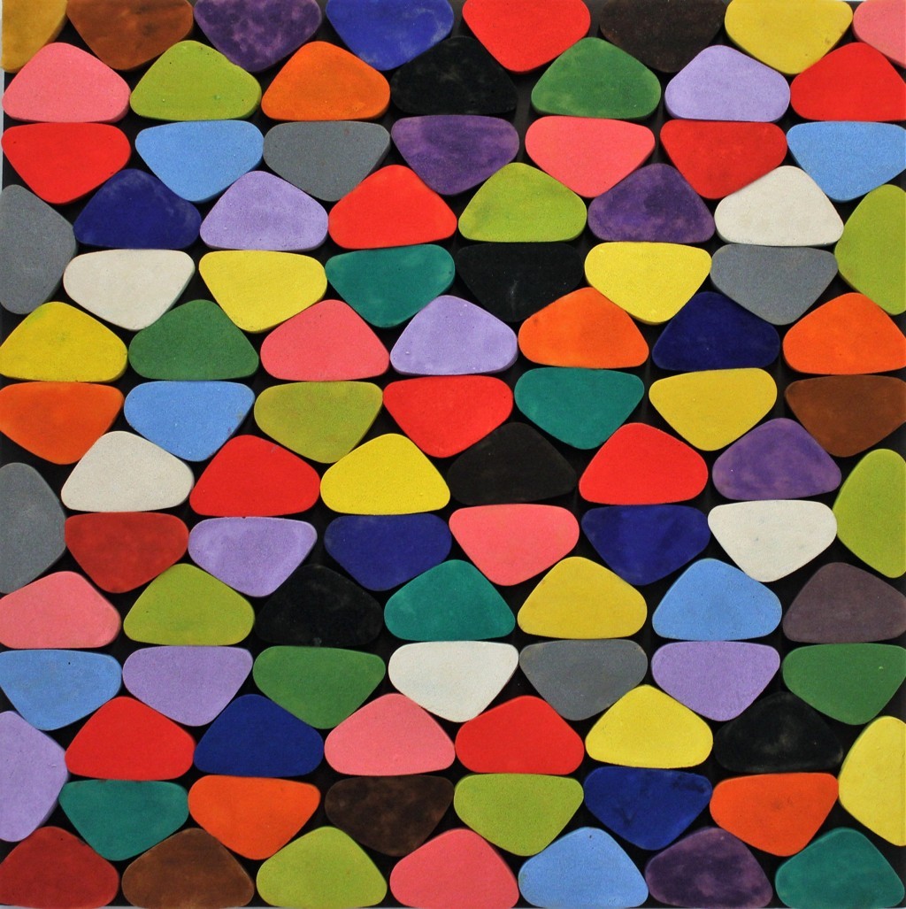 Giovedì 18/11 abbiamo iniziato un nuovo lavoro di arte con la gomma piuma: un materiale che finora avevamo utilizzato solo per costruire oggetti scenici. L'idea ci è venuta ispirandoci a un quadro realizzato con le spugne da un altro gruppo di compagni. Noi, però, volevamo incollare la gomma piuma in modo ritmico. Così abbiamo iniziato a ricoprire il laminil con le spugne, per vedere quante ne servivano. Dovevamo posizionarle più volte per la collocazione migliore ed evitare i vuoti tra una spugna e l'altra. Per ricordare le posizioni il maestro ha scattato due foto in modo che la prossima volta non perdiamo altro tempo per riposizionarle nel modo corretto. Il lavoro è molto lungo e la settimana dopo abbiamo iniziato a colorare le spugne con diversi colori. Ci siamo fatti aiutare da un altro gruppo di compagne, che, nel frattempo avevano finito il lavoro con le colature. Il quadro non è terminato, perché dobbiamo ancora decidere il colore per lo sfondo. Pensandoci bene, anche facendo riferimento alle ricerche sui colori sperimentati insieme, il nero andrebbe benissimo perché esalta i colori delle spugne. Guardando bene il quadro abbiamo deciso di dargli il nome di “Carapace arcobaleno”. Infatti visto l'insieme sembra il guscio di una tartaruga, il cui nome scientifico è appunto “carapace” e i tanti colori ricordano quelli dell'arcobaleno.